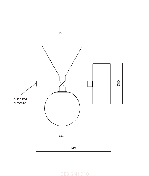 Kinkiet będący prostym i estetycznym połączeniem dwóch brył: szklanej kuli i marmurowego stożka, wspartych na metalowej konstrukcji.