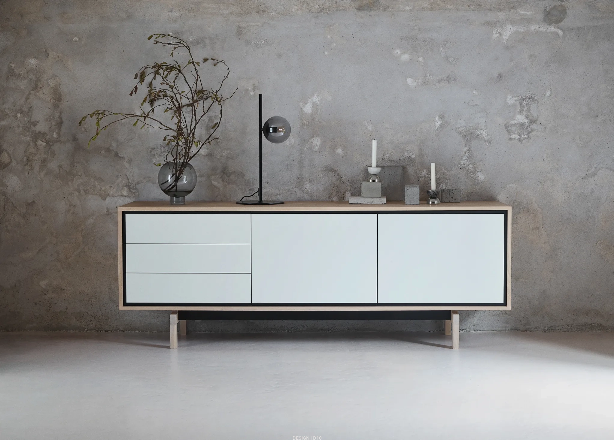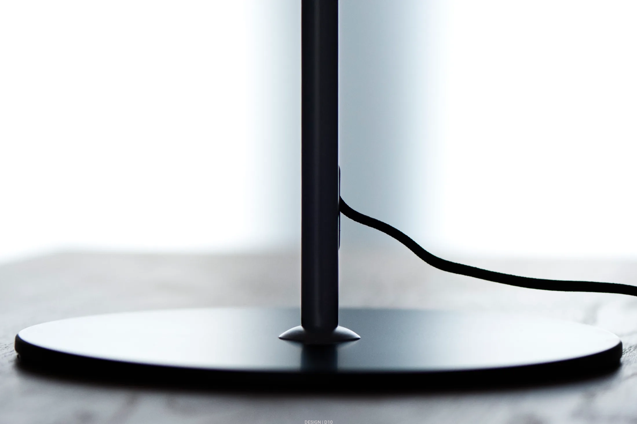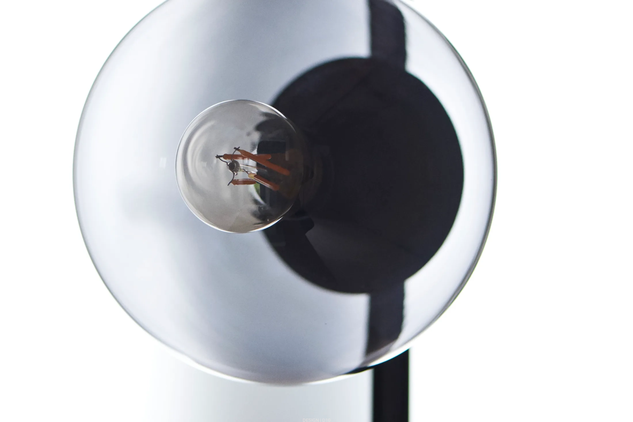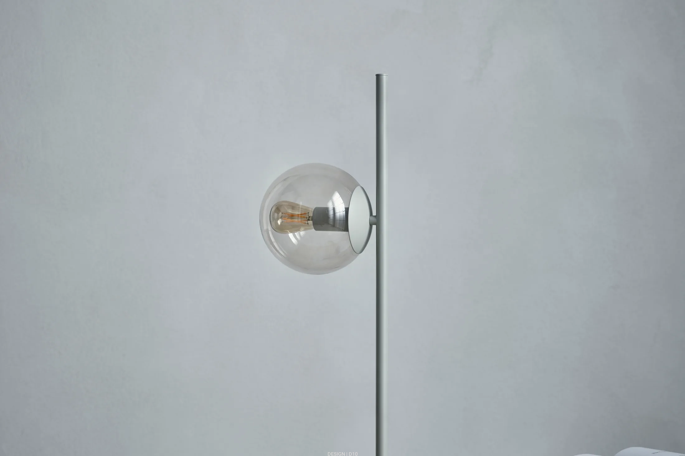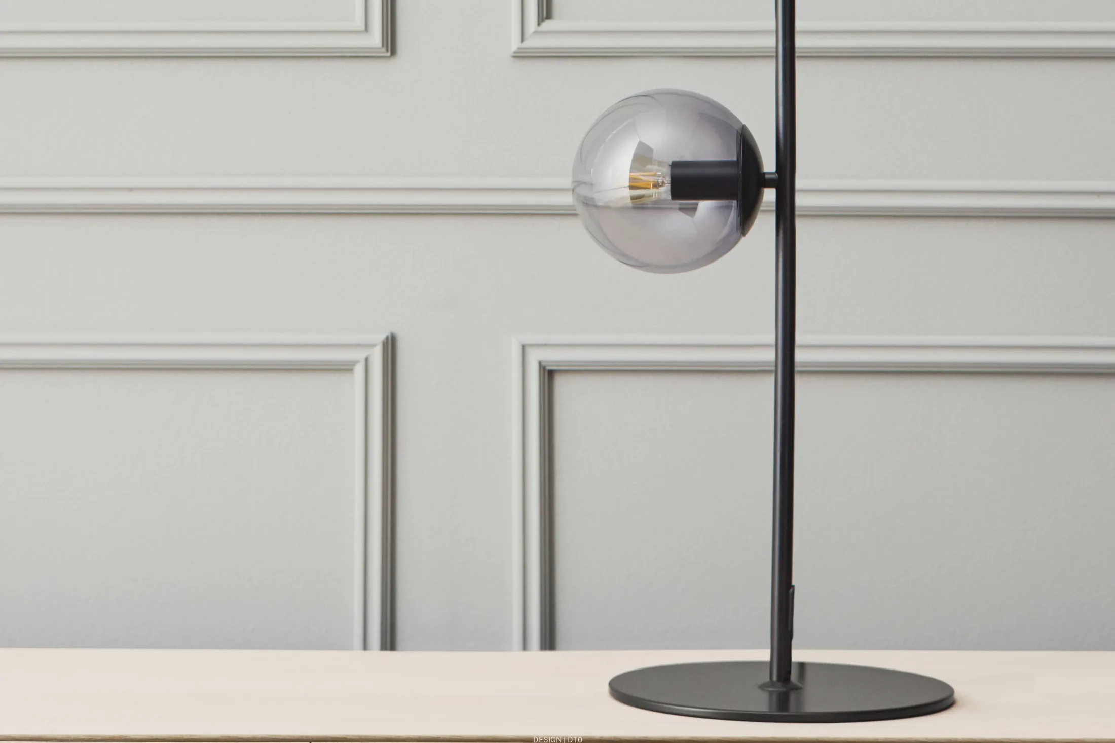 Lampa stołowa o prostotym, przejrzystym designie, zaprojektowana przez renomowane duńskie studio 365° North. Szklana przejrzysta kula w kolorze przydymionej szarości zamontowana na minimalistycznym metalowym stojaku wprowadza do wnętrza trochę industrialnego charakteru. Lampa posiada możliwość ściemniania.