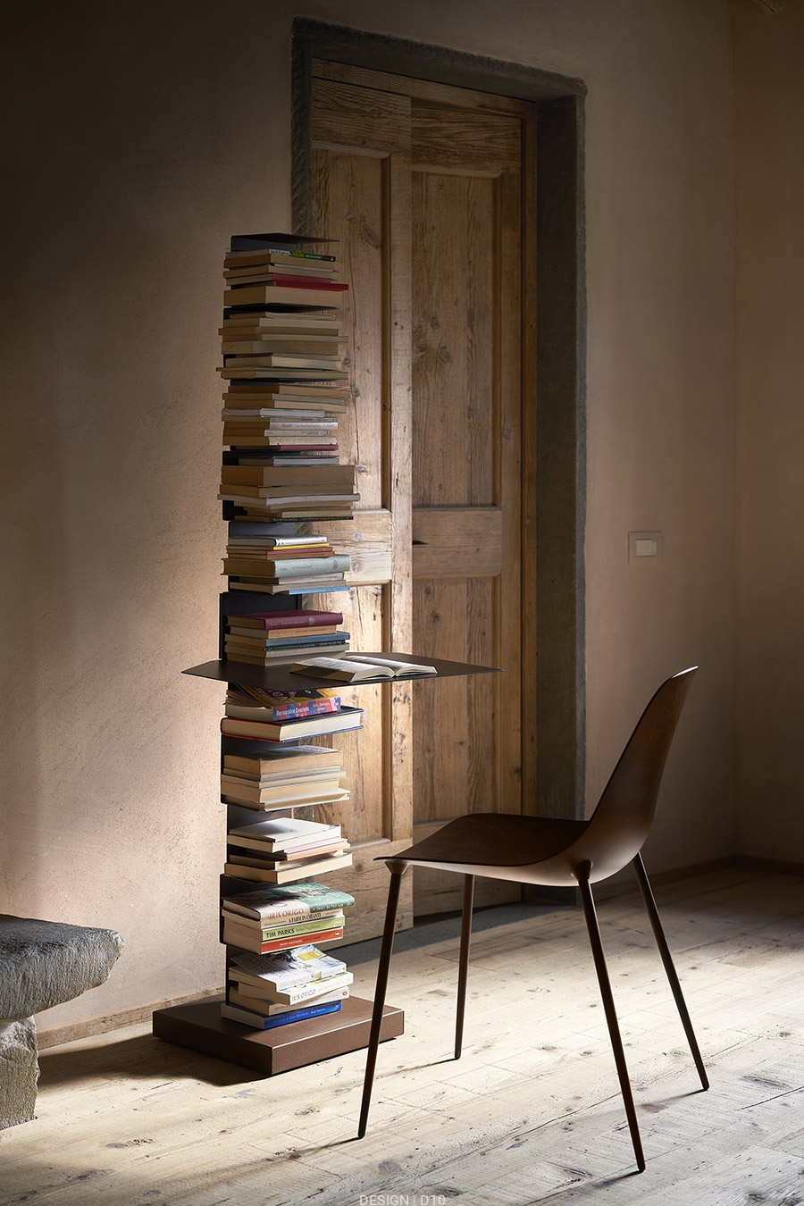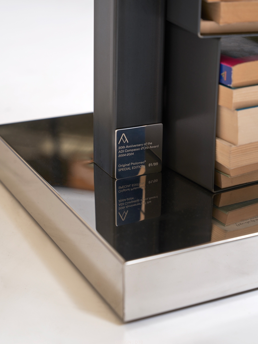 Original Ptolomeo to regał, który ukrywa swój kształt, aby podkreślić zawartość, eliminując „zbędne” elementy, aby uwydatnić to, co najważniejsze, czyli książki. Regał jest stalową kolumną, do której przymocowane są cienkie półki, również wykonane ze stali. Półki stopniowo znikają, gdy kolumna wypełnia się książkami. Gdy jest pełna, Original Ptolomeo staje się całkowicie niewidoczny i wygląda tak, jakby książki stały samodzielnie.