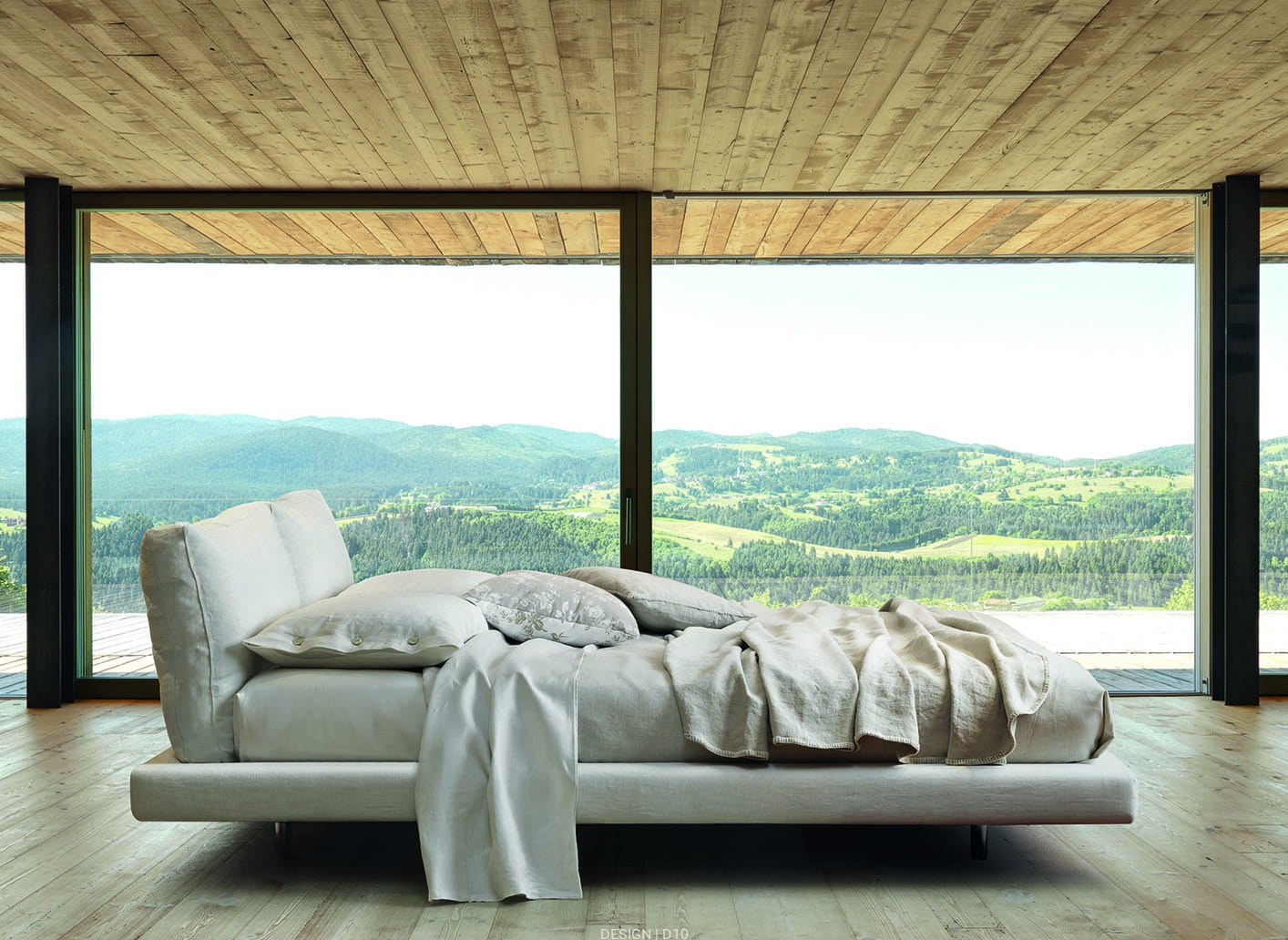 Ozium to łóżko o eleganckiej, zgrabnej sylwetce które wyglada jakby unosiło się w powietrzu dzięki ukrytym metalowym nogom. Dostępne w obiciu z tkaniny lub skóry i szerokości 182 cm lub 202 cm.