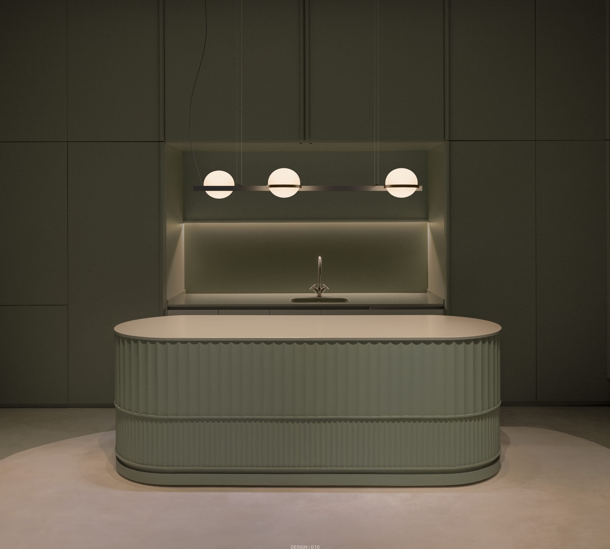 Atmosfera wnętrza nabiera życia i emocji dzięki możliwości połączenia roślin z kompozycjami oświetleniowymi. Palma łączy światło i roślinność jak w naturalnym krajobrazie.
