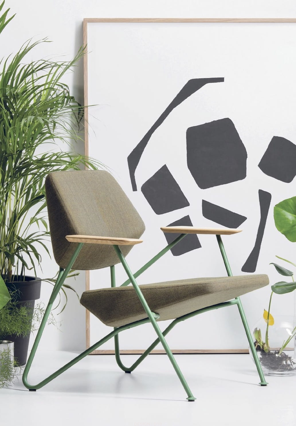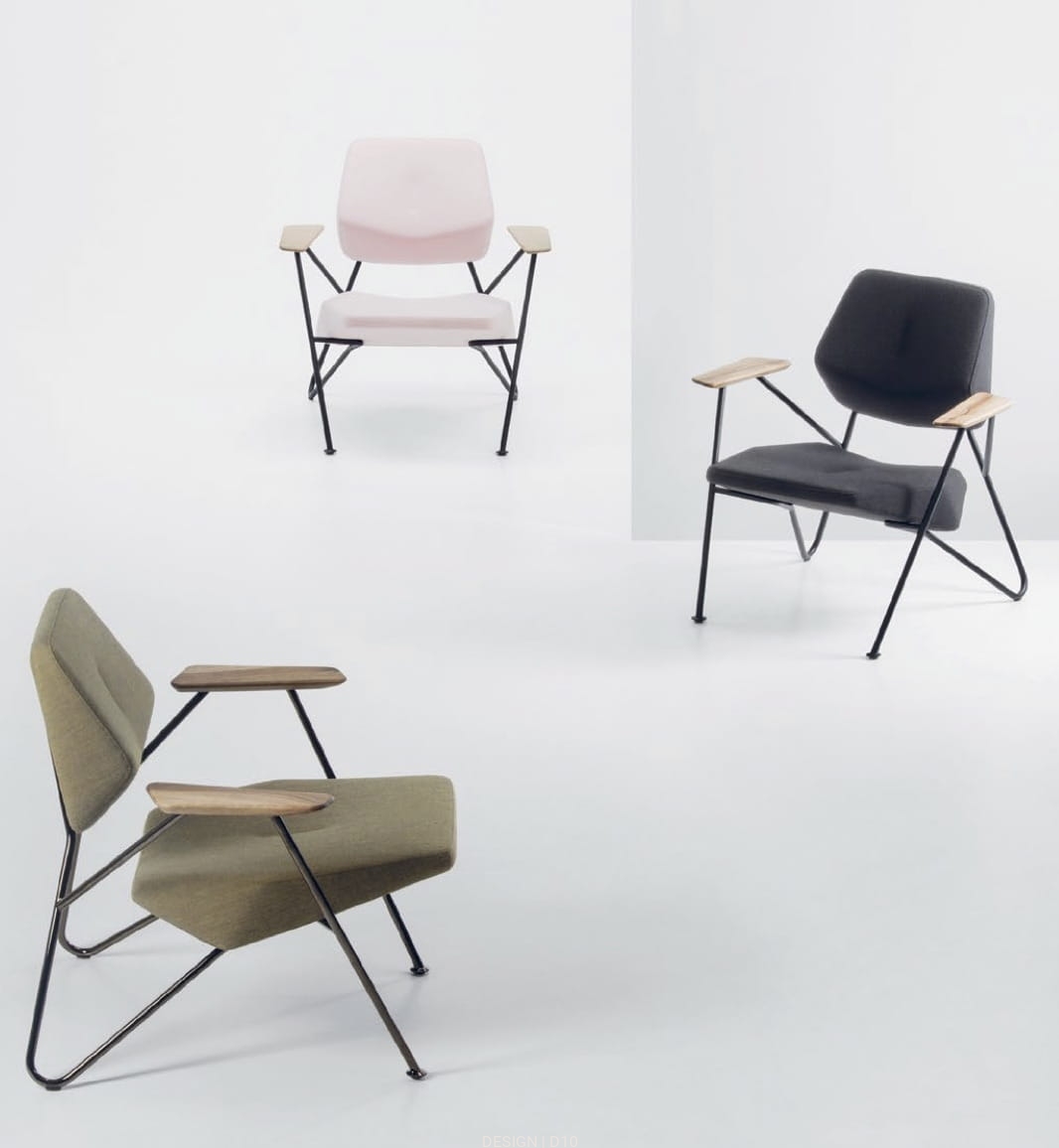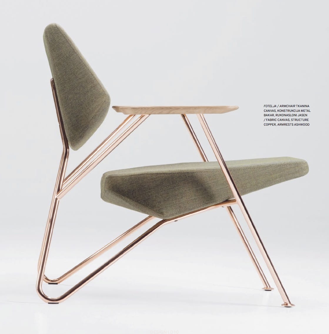 Fotel Polygon, posiada modernistyczny design, który sprawia, że fotel jest niezwykle wyjątkowy na tle współczesnych elementów wystroju wnętrz. Wykonany z litego drewna i sklejki. Siedzisko i oparcie wykonano z pianki poliuretanowej i watoliny poliestrowej obitej tkaniną.