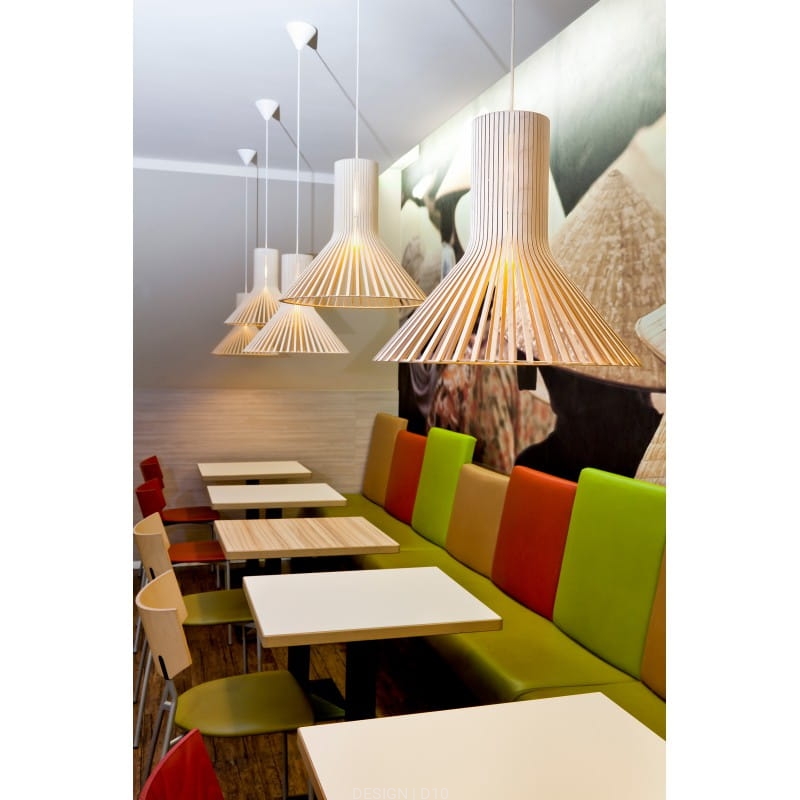 Lampa wisząca wykonana z pasów brzozowej sklejki - giętych i klejonych dla uzyskania pożądanego kształtu. Idealnie prezentuje się solo jak i w większej grupie obok siebie. Nie dominuje nad przestrzenią tylko naturalnie się w nią wpasowuje. Lampa ta odzwierciedla prostotę, skandynawskiego designu. Wspaniale sprawdza się w hotelach oraz restauracjach. Źródłem światła jest żarówka LED o ciepłej barwie, dzięki czemu tworzy przytulną atmosferę. Lampa dostępna w kolorach: naturalna brzoza, biały, czarny oraz orzech. Możliwość podłączenia oprawy do systemu sterowania oświetleniem DALI.