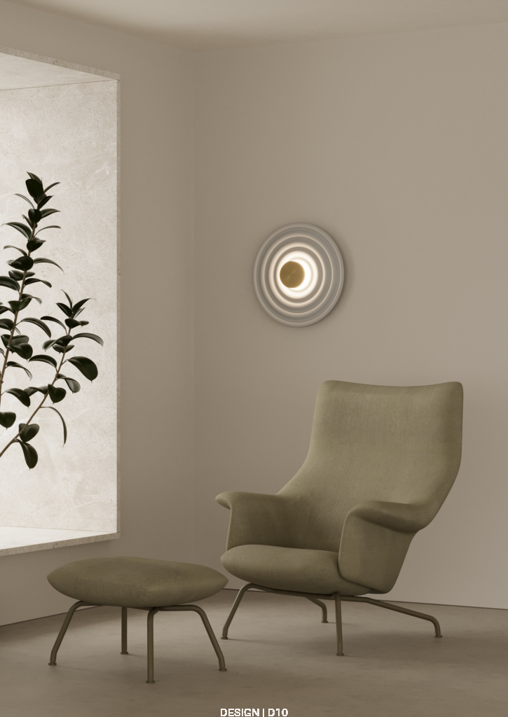 Rang jest nowym kinkietem do szerokiej kolekcji lamp marki Aromas. Wyróżnia się oryginalnym dyskiem z żywicy o budowie przypominającym fale. Dzięki niemu tworzy on niezwykłą grę światłem, niespotykaną w standardowych lampach.