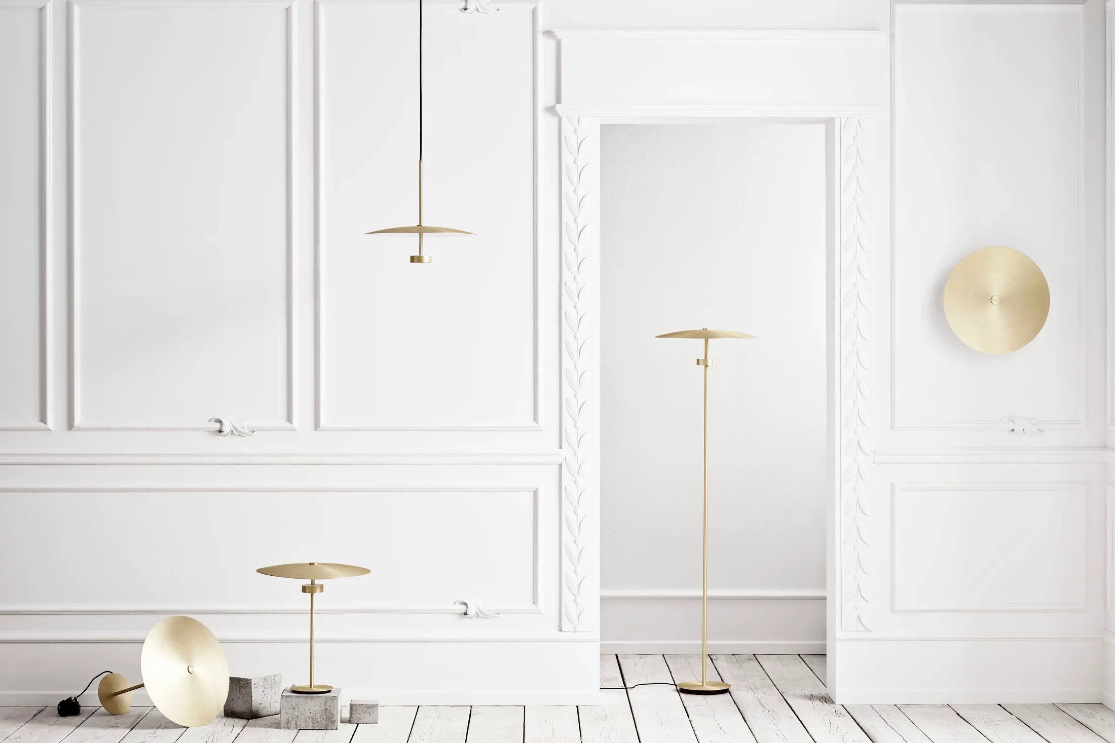 Wykończenie: aluminium malowane w kolorze mosiądzu, czarnym i szarym.
