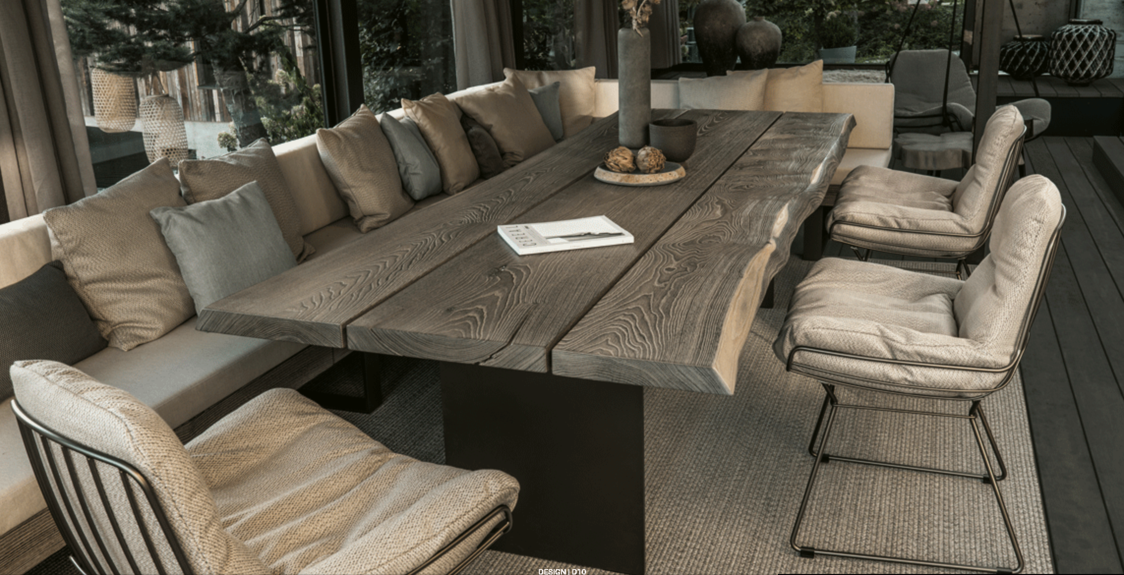 Stół Outdoorowy SK 04 Komposit® to arcydzieło z edycji Stefana Knoppa. Potężny blat składa się z efektownych desek, których ślady pochodzenia są pomysłowo podkreślone. W wersji zewnętrznej stół jest dostępny w kolorze szczotkowanego kasztana (w odcieniu piasku) z podstawą ze stali nierdzewnej V2A w podwójnym kolorze brązowej glazury. Kompozyt SK 04 to nie tylko stylowa atrakcja zewnętrzna, ale także hołd złożony wyjątkowej kompozycji naturalnych materiałów i kunsztowi wykonania.