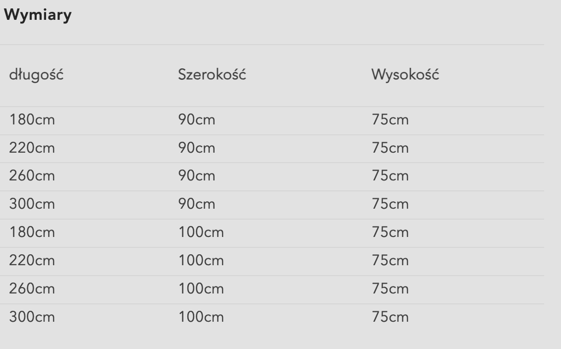 Podana cena dotyczy wariantu 180x90x75 cm.