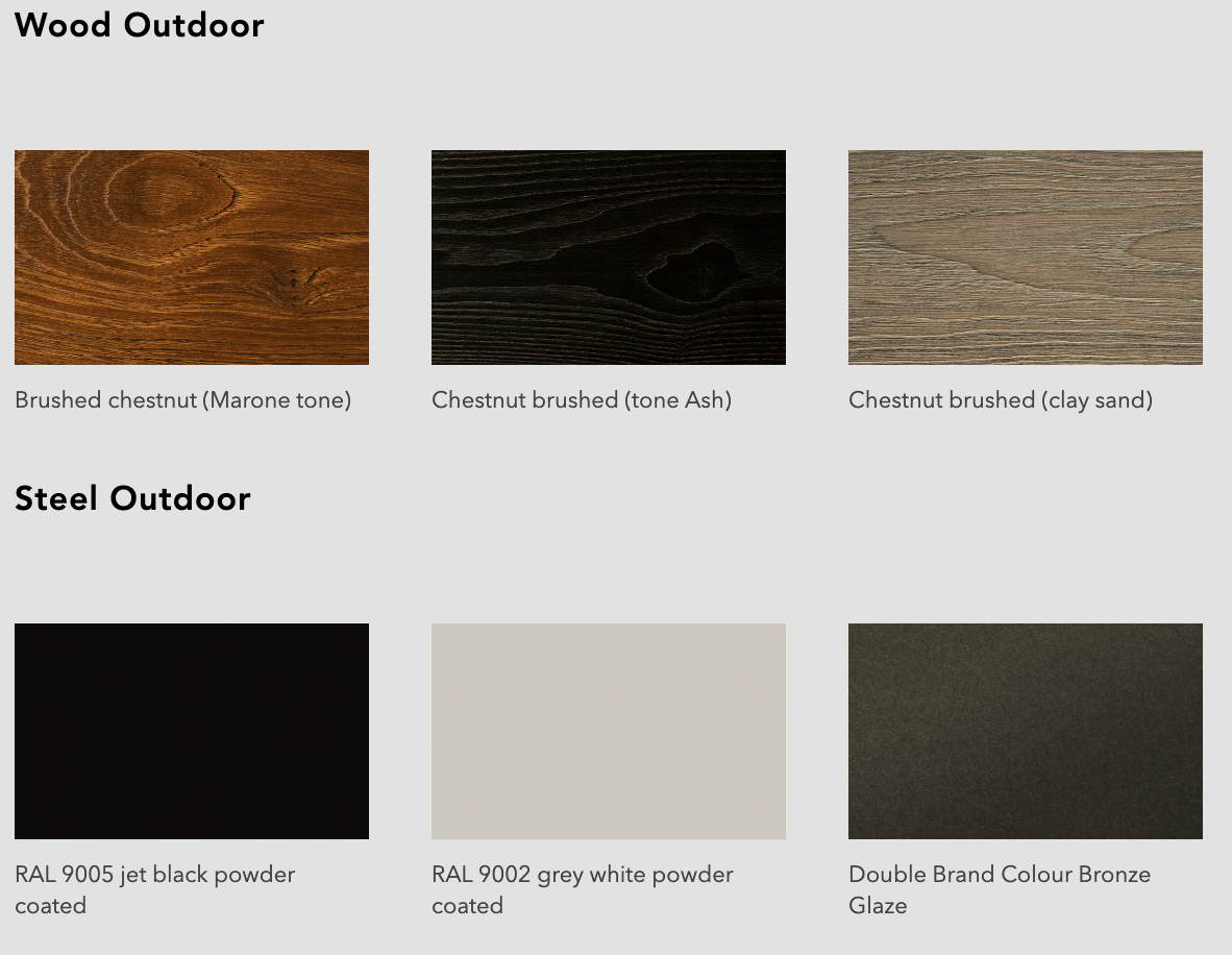 Dostępny w 6 wariantach kolorystycznych, drewnianych i stalowych.