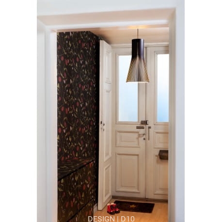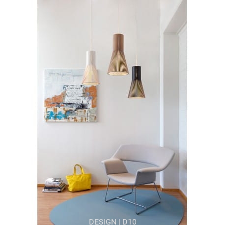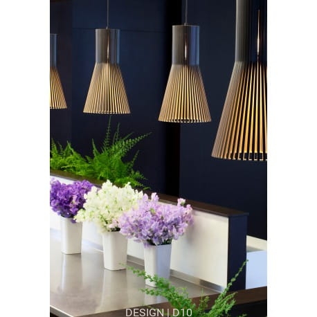 Lampa wisząca wykonana z pasów brzozowej sklejki - giętych i klejonych dla uzyskania pożądanego kształtu. Lampa Secto Small 4201, jest prekursorem stanowiącym podwaliny pod produkcję kolejnych modeli, wyznaczyła kurs rozwoju marki Secto Design. Lampa ta odzwierciedla prostotę, skandynawskiego designu. Jest odpowiednia do niższych pomieszczeń, jak również doskonale współgra z lampami tej samej marki lecz w innych formach. Wspaniale sprawdza się w hotelach oraz restauracjach. Źródłem światła jest żarówka LED o ciepłej barwie, dzięki czemu tworzy przytulną atmosferę. Lampa dostępna w kolorach: naturalna brzoza, biały, czarny oraz orzech. Możliwość podłączenia oprawy do systemu sterowania oświetleniem DALI.