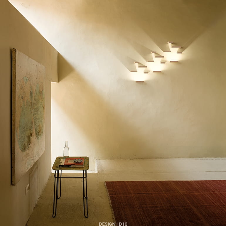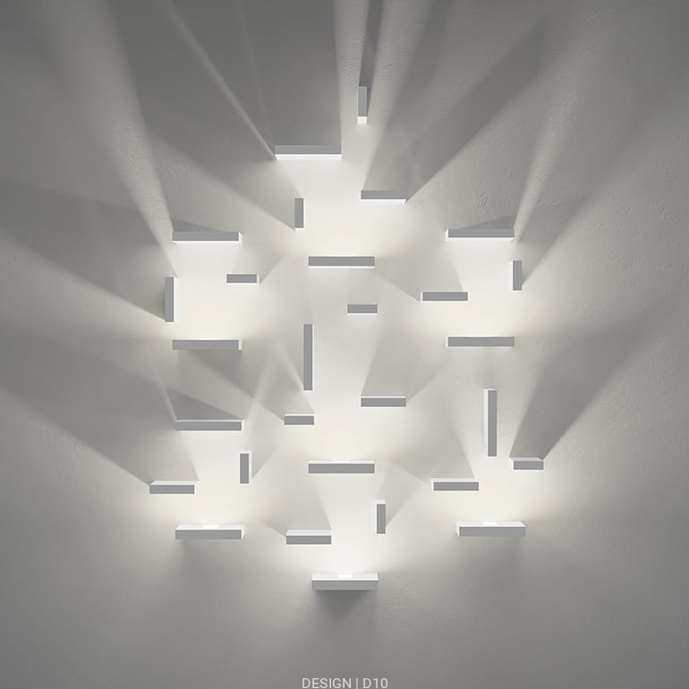 Set, to lampa zaprojektowana w taki sposób, aby zachęcać do zabawy światłem. Ruchome części tworzą refleksy świetlne, które generują oraz odbijają światło na ścianach, tworząc dekoracje same w sobie. Gdziekolwiek zostanie umieszczona, na ścianach małych pokoi czy też ogromnych hoteli lub wejść biurowych, jest pięknym elementem dekoracyjnym oraz perfekcyjnym oświetleniem.