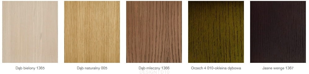 Nogi i podstawy wykonane z litego dębu. Blat - fornir dębowy.
