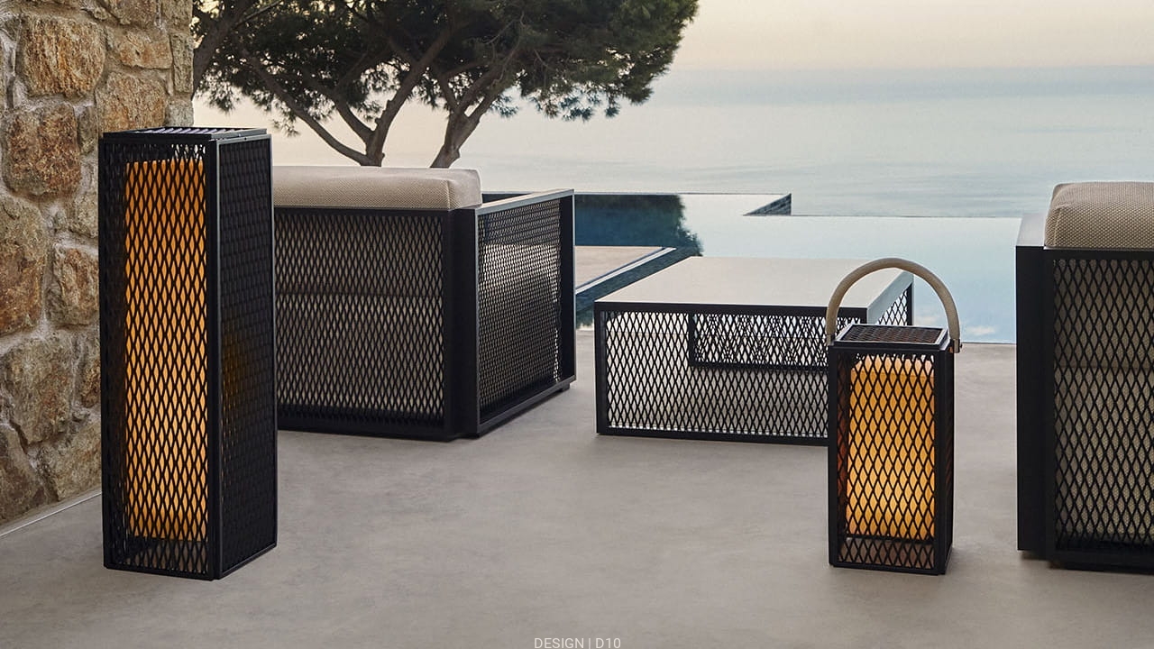 Charakterystycznym elementem serii The Factory jest aluminiowy profil oraz siatka typu "Deployé". Seria została zainspirowana przez żelazną architekturę Nowego Yorku - stąd wziął się industrialny wygląd który przypomina dzielnice takie jak Soho lub Tribeca. Całość kolekcji posiada lekki charakter poprzez zgrabną budowę z aluminium połączoną z szerokim wyborem obić. The Factory nadaje się do użytku wewnętrznego jak i zewnętrznego. Klosz wewnętrzny wykonany z żywicy polietylenowej.
