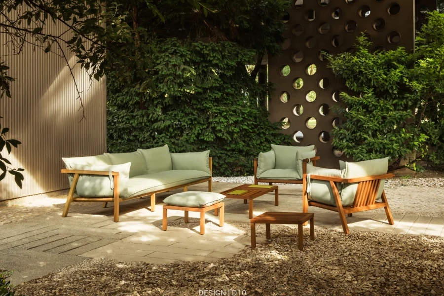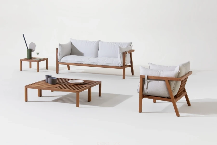 Umomoku Outdoor, to sofa o lekkiej konstrukcji i tropikalnym wyglądzie. Swietnie sprawdzi się w na otwartych przestrzeniach takich jak hotelowe tarasy lub domowe ogródki. Głównym elementem jest wielka poduszka która zgrabnie komponuje się z naturalną konstrukcją z drewna. Dostępna w wersji 2 lub 3 częściowej w obiciach z różnych typów tkanin.