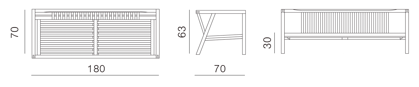 Wykonanie: drewno tekowe / dąb; kilka rodzajów tkanin.