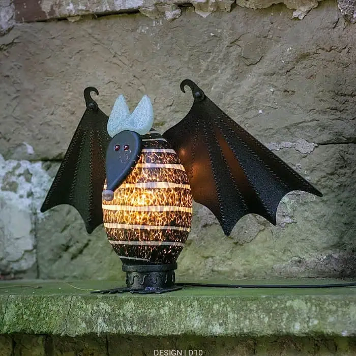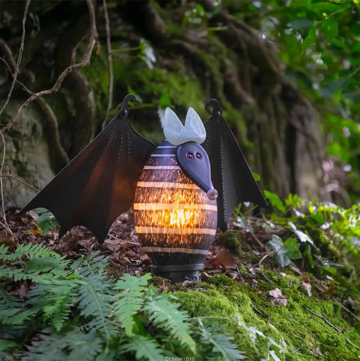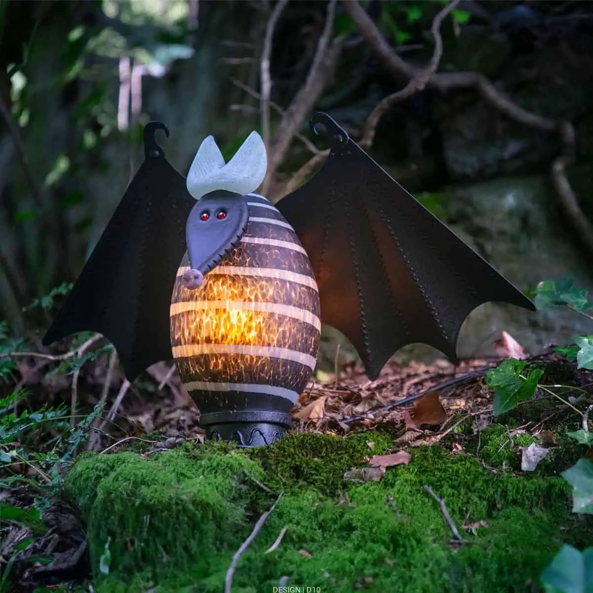 Wcale nie taki straszna, delikatna lampa Vampy zapewnia przytulne wieczory na świeżym powietrzu, przy kominku lub w dowolnym miejscu, w którym zawiesisz lub postawisz tego artystycznie wykonanego nietoperza. Wysokiej jakości ręcznie dmuchane szkło mieni się ciepłymi odcieniami bursztynu, oliwki lub czerwieni. Skrzydła i podstawa są wykonane ze stali malowanej proszkowo i ręcznie zdobione. Każdy egzemplarz jest wyjątkowy: ręczna obróbka tworzy wiele detali, które nadają każdemu obiektowi indywidualny charakter.