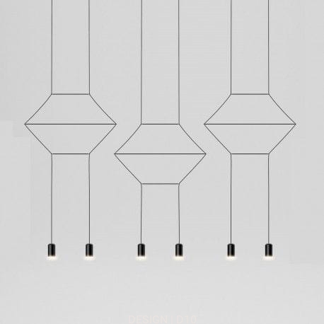 Wireflow Lineal to wiszące oprawy, które swój wygląd zawdzięczają szkieletowej ramie stworzonej przez przewody zakończone wbudowanymi ledowymi żarówkami. Podobnie jak Wireflow, ta seria również charakteryzuje się czystą minimalistyczną formą opartą na strukturze lakierowanych metalowych prętów i kabli. Tym razem mamy do czynienia z lampami 2D, co tym bardziej tworzy z nich urzekający graficzny element wystroju. Lampy te są idealne do dekoracji dużych pomieszczeń, szczególnie z wysokimi sufitami.