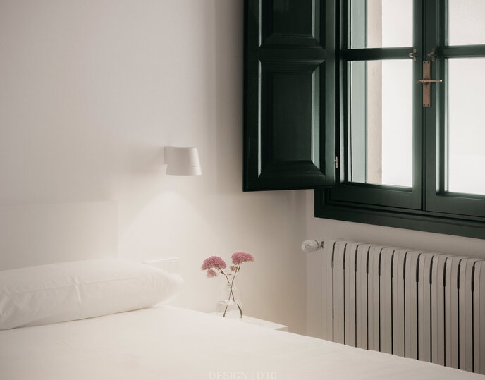 Lampa Focal, oparta na pomysłowym połączeniu koła i kwadratu, podkreśla otoczenie, wzbogacając je jednocześnie subtelnym i intrygującym wzornictwem. Dzięki swojej wszechstronności i prostocie montażu z łatwością dopasowuje się do różnorodnych przestrzeni i stylów wystroju. Ta wersja do montażu na ścianie zapewnia skupione światło skierowane w dół, idealne do korytarzy lub do podkreślania konkretnych elementów.