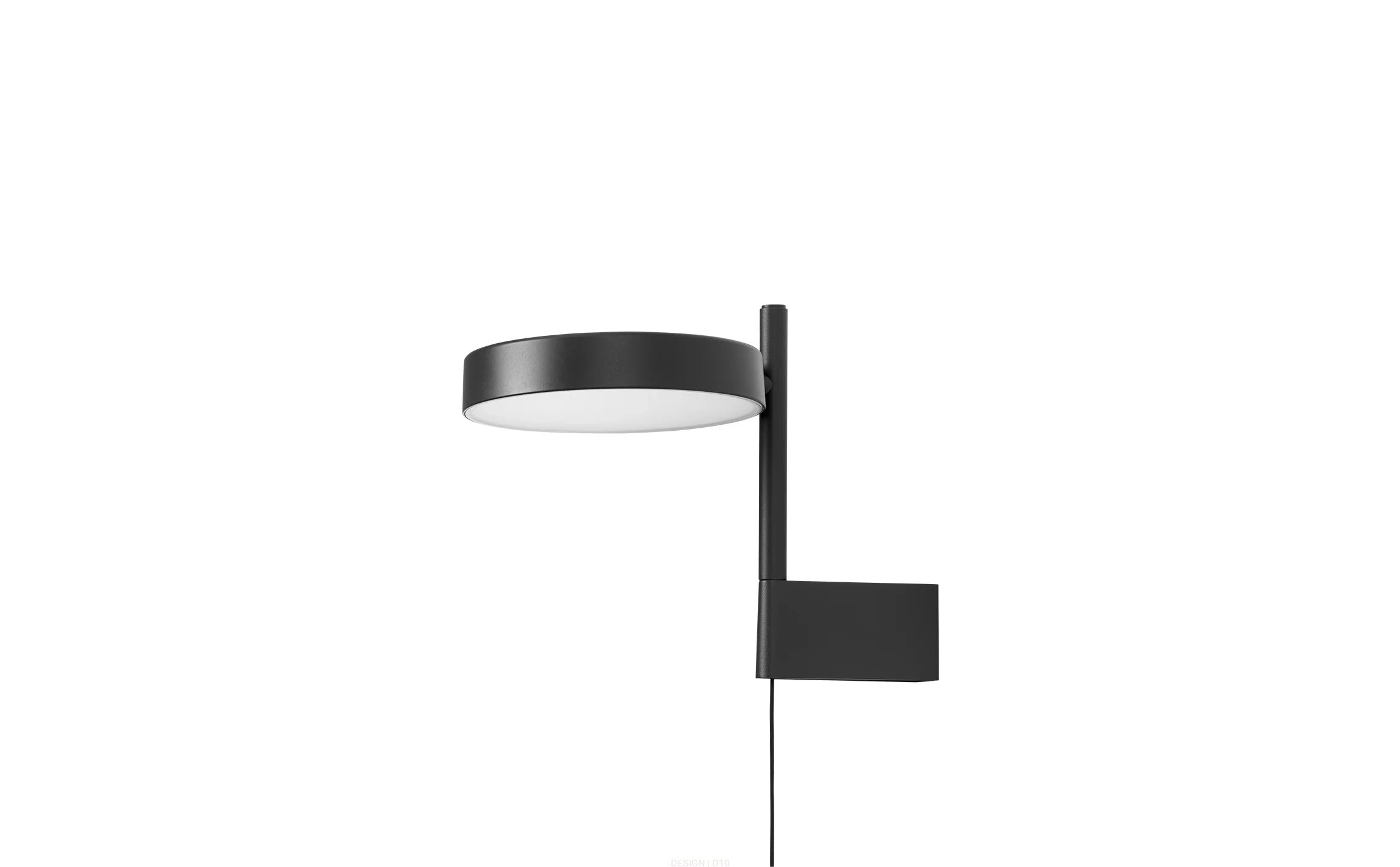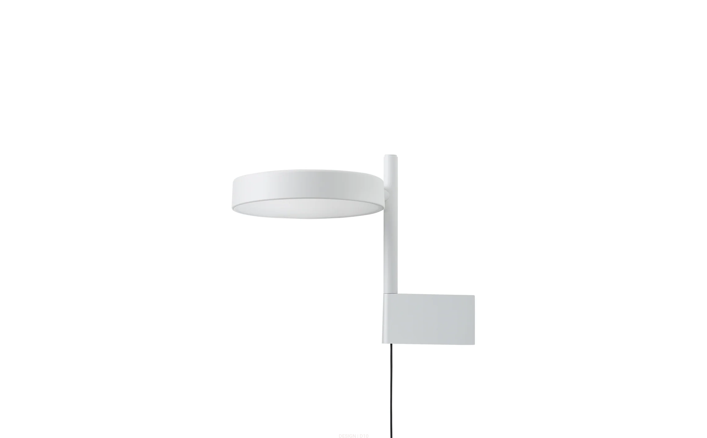 Lampa Pastille opiera się na czystej geometrycznej prostocie: świecący krążek połączony z cienką pionową linią. Zaprojektowana jako zaproszenie do interakcji, jej obfite światło można płynnie obracać i kierować – płynnie przechodząc od jasnej, przyjemnej klarowności do delikatnego, nastrojowego blasku. Ta wersja z uchwytem bocznym umożliwia płynny montaż na ścianie bez widocznego kabla.