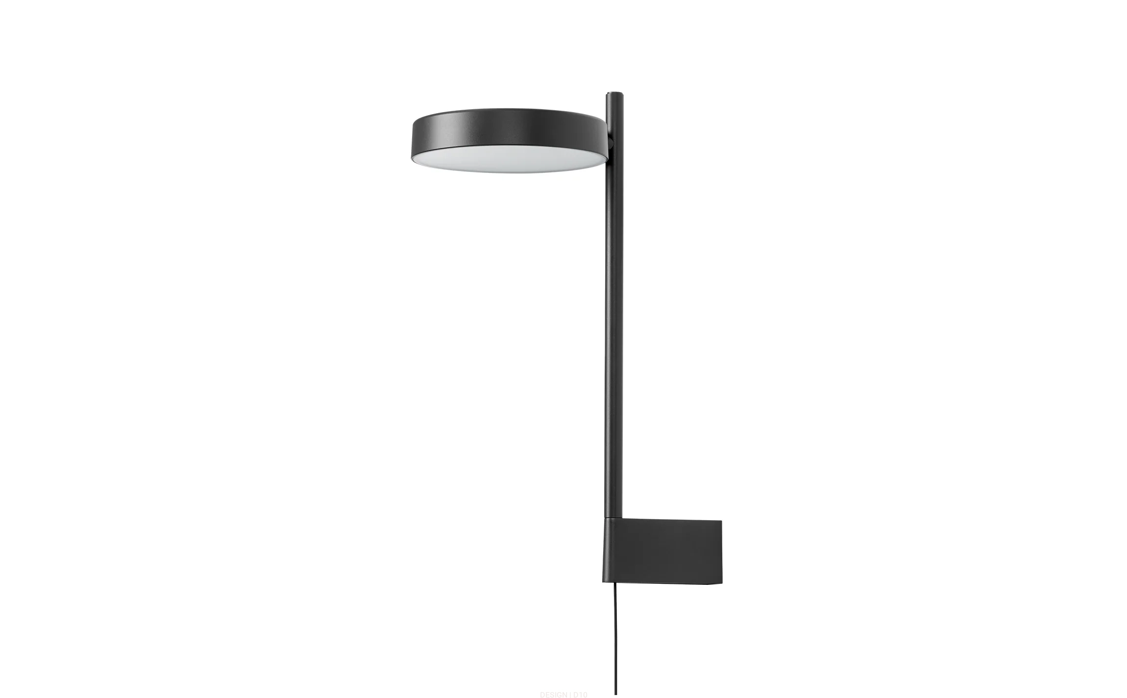 Lampa Pastille opiera się na czystej geometrycznej prostocie: świecący krążek połączony z cienką pionową linią. Zaprojektowana jako zaproszenie do interakcji, jej obfite światło można płynnie obracać i kierować – płynnie przechodząc od jasnej, przyjemnej klarowności do delikatnego, nastrojowego blasku. Ta wersja z uchwytem bocznym umożliwia płynny montaż na ścianie bez widocznego kabla. Posiada również dłuższy trzonek, zapewniający wyższy i szerszy zasięg oświetlenia.